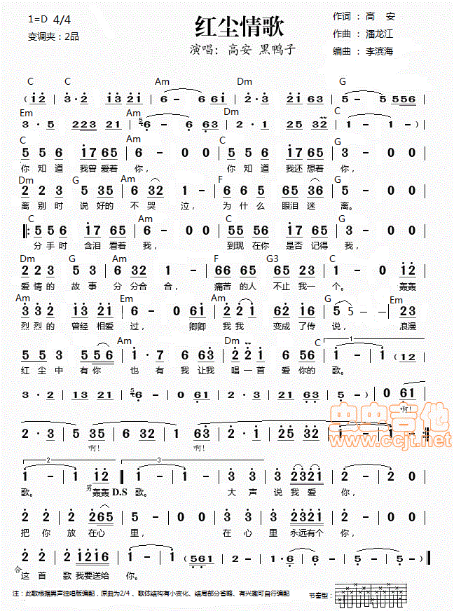 曲谱介绍: 《高安》吉他弹唱谱,共有1张高清图谱,免翻页排版设计。