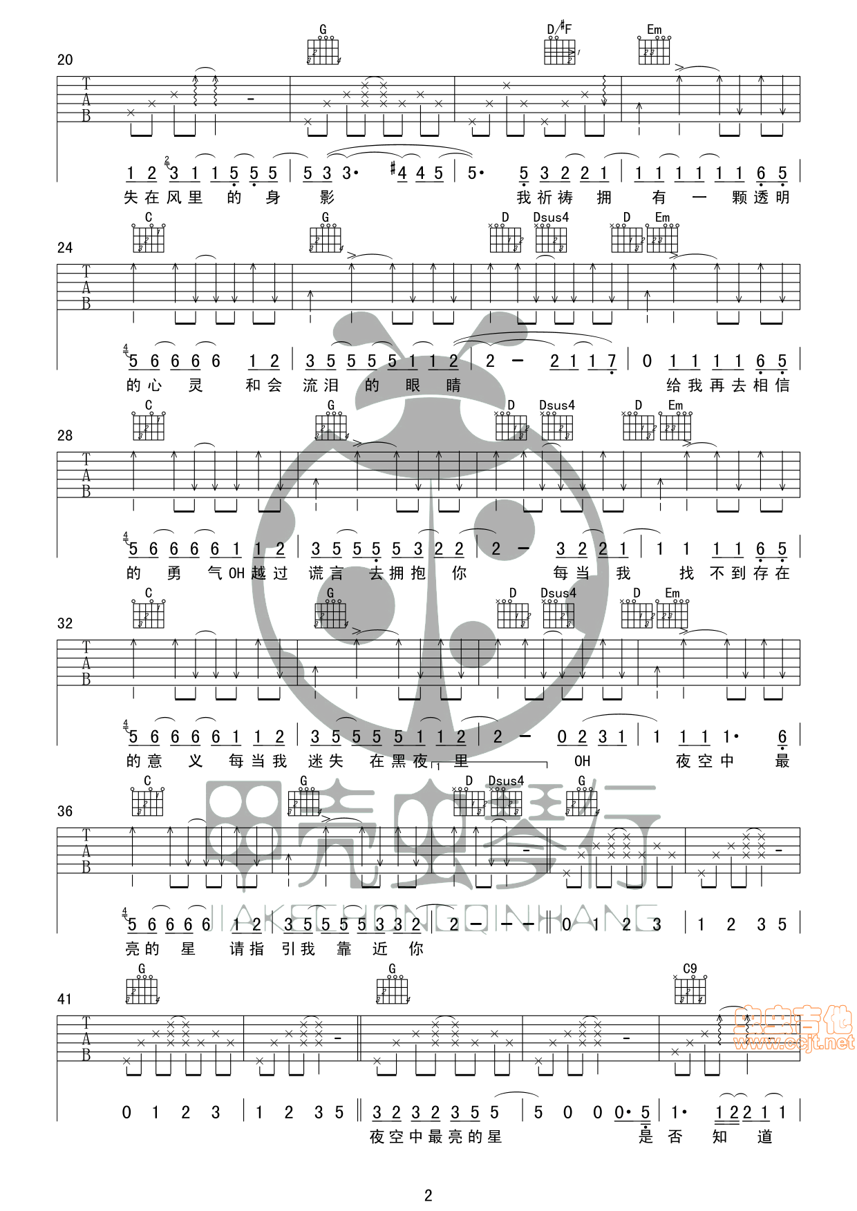 夜空中最亮的星吉他谱 - 吉他弹唱谱 - 原版