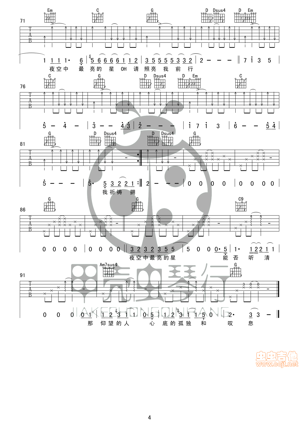 曲谱介绍: 《夜空中最亮的星》吉他弹唱谱原版,共有4张高清图谱。