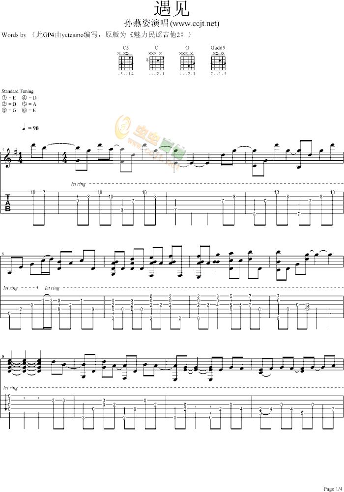 遇见吉他谱 - 吉他独奏谱