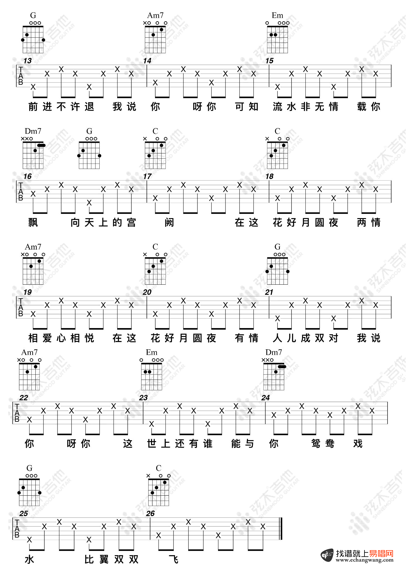 当前位置:琴谱网>吉他弹唱>花好月圆夜