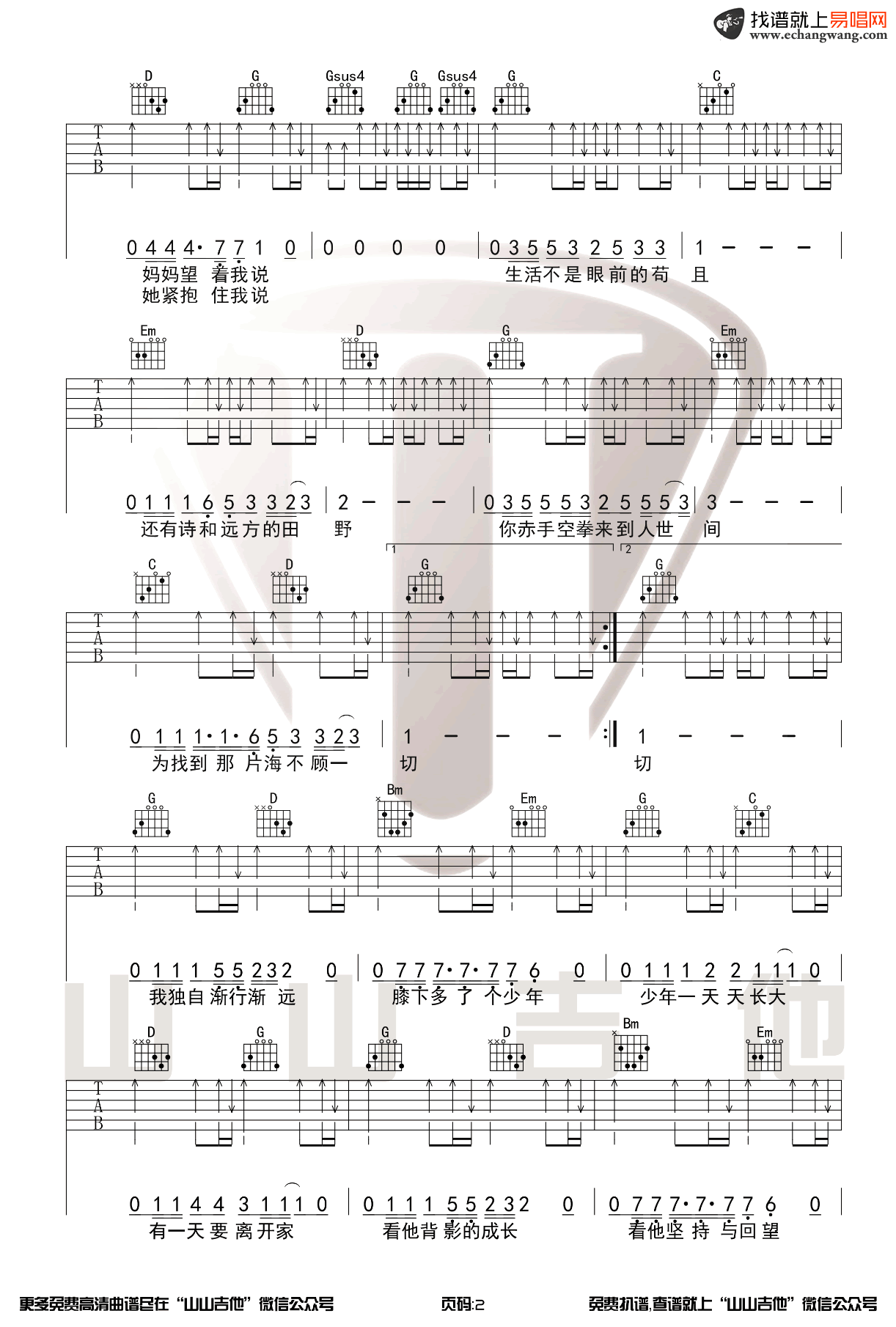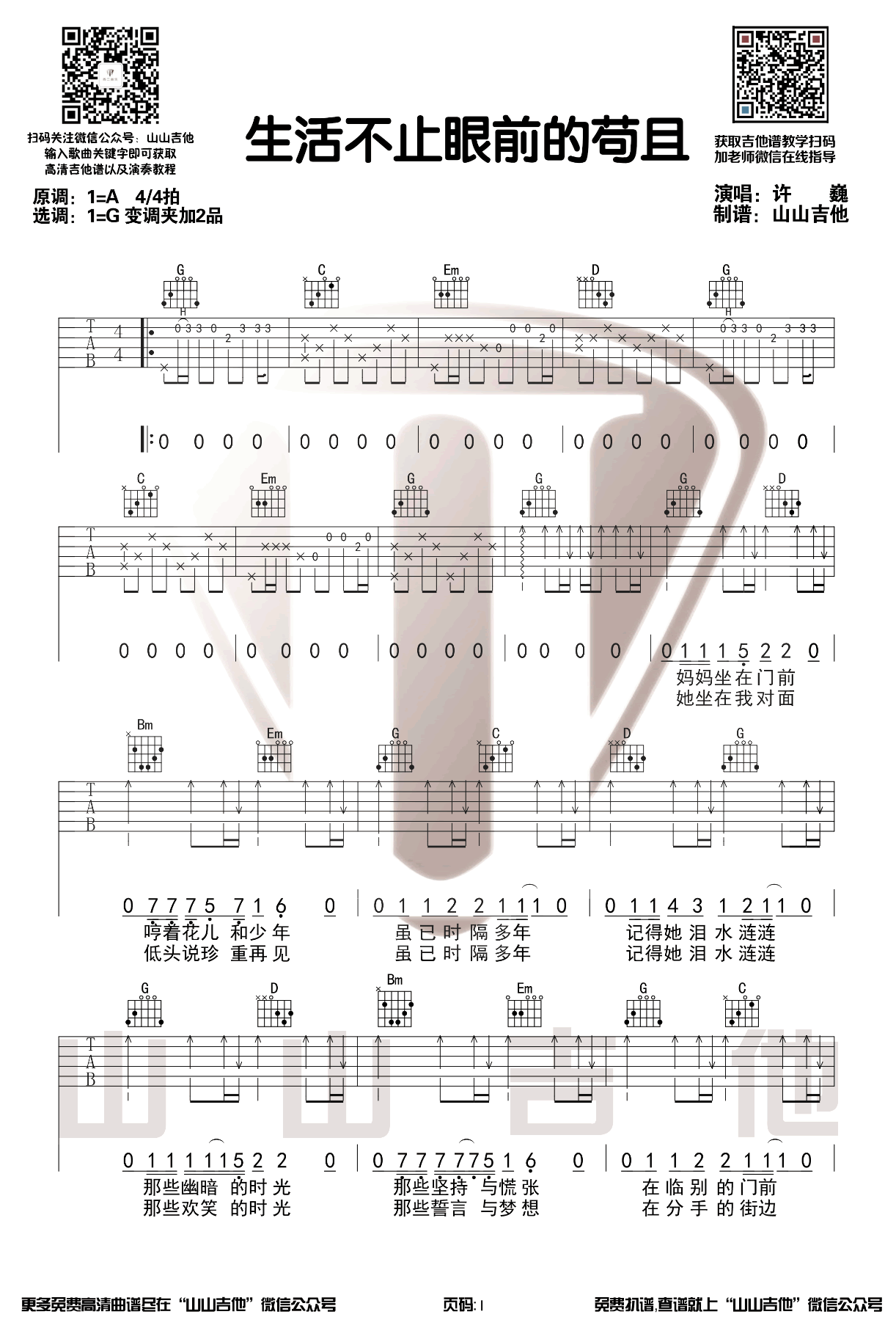 曲谱介绍: 许巍《生活不止眼前的苟且》吉他弹唱谱,共有3张高清图谱。