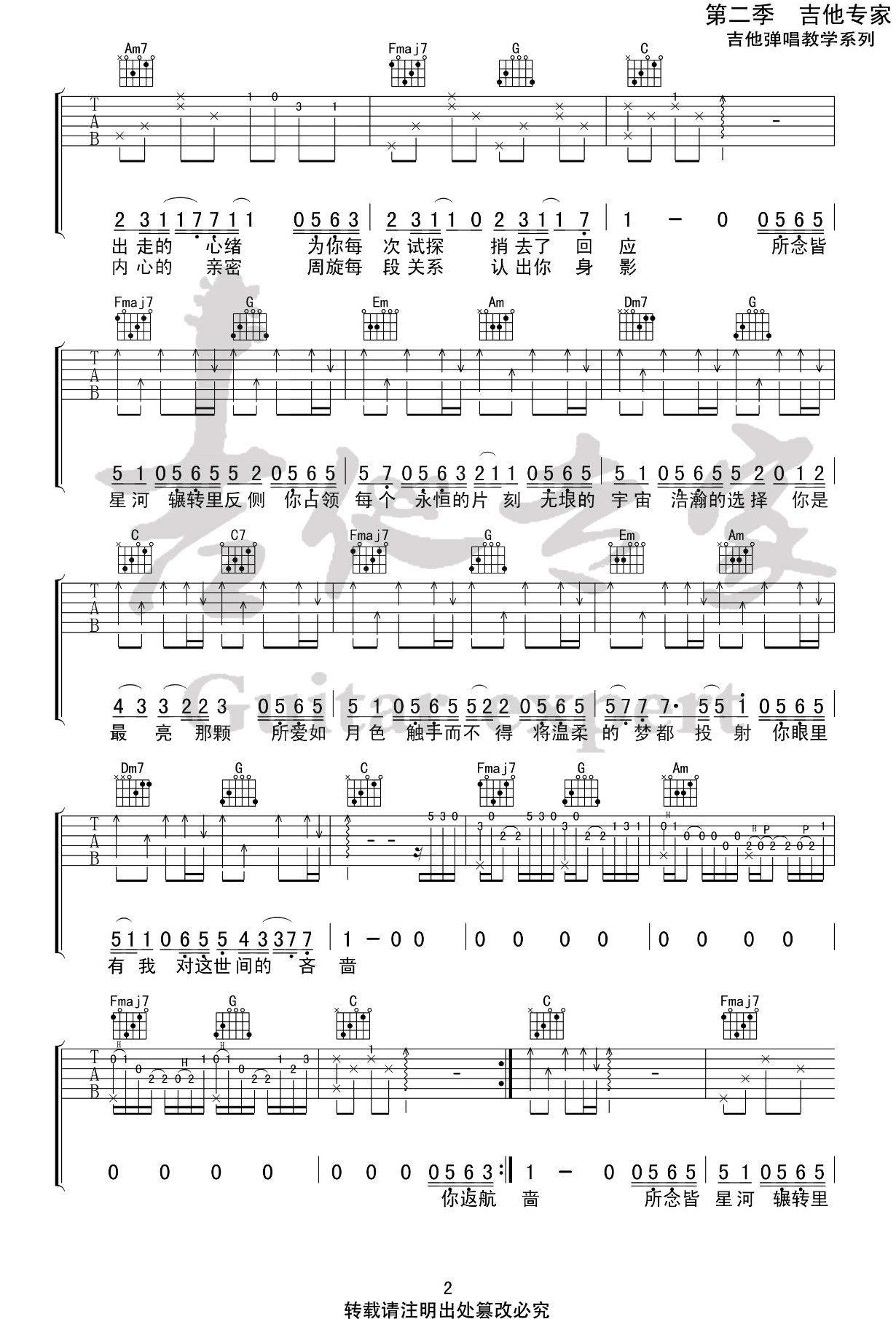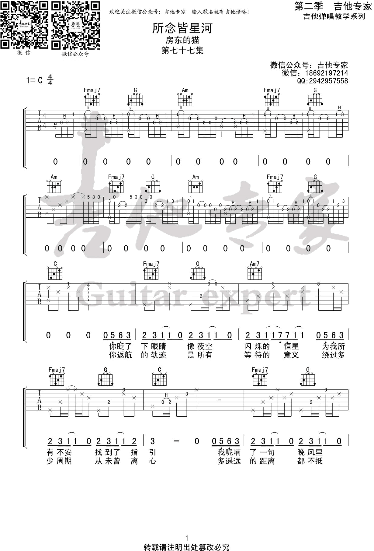 曲谱介绍: 房东的猫《所念皆星河》吉他弹唱谱,共有3张高清图谱。
