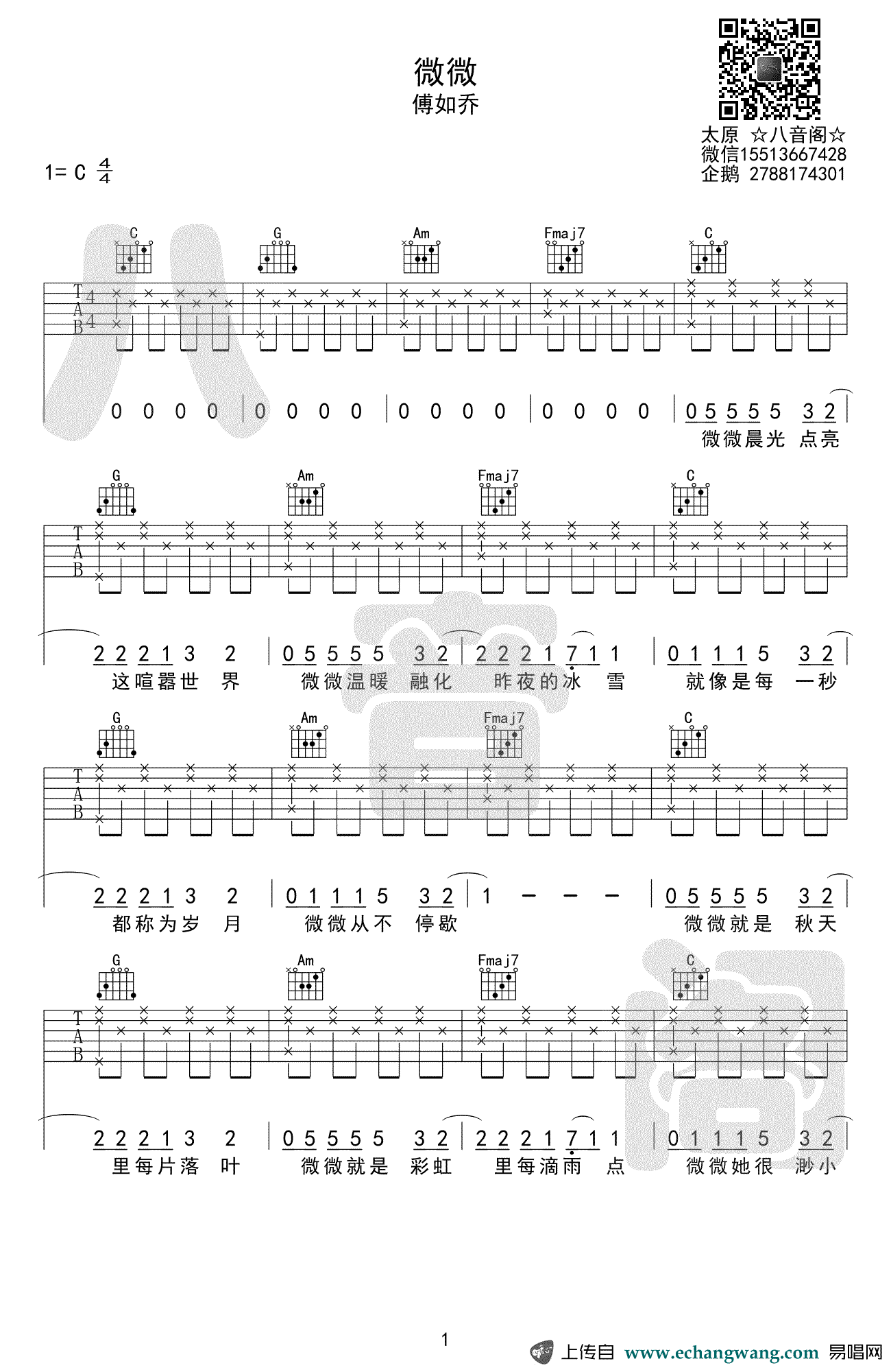 微微吉他谱 - 傅如乔 - 吉他弹唱谱