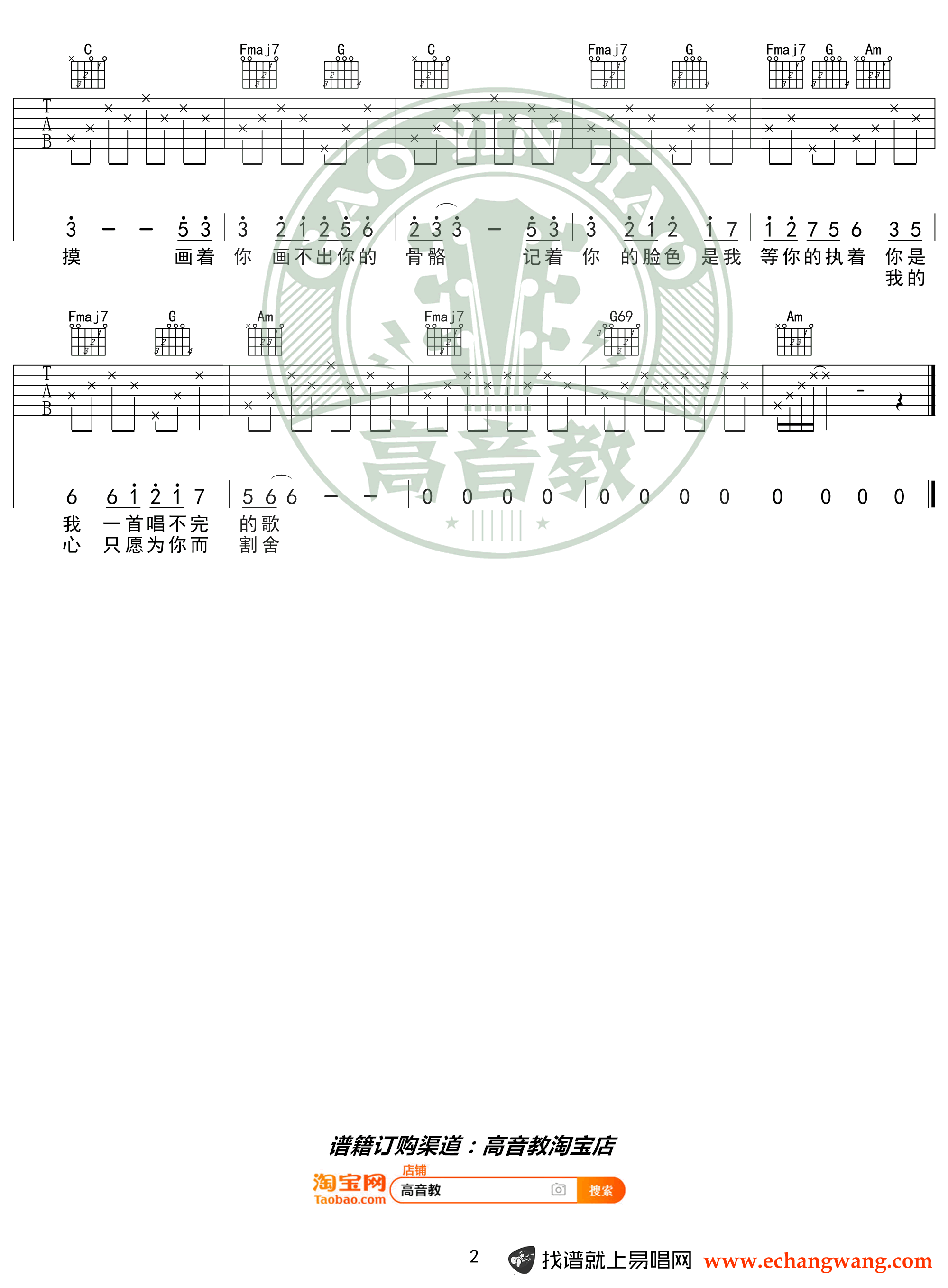 曲谱介绍: 张靓颖《画心》吉他弹唱谱,共有2张高清图谱,免翻页排版设计。