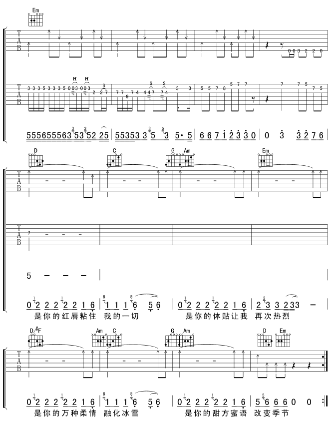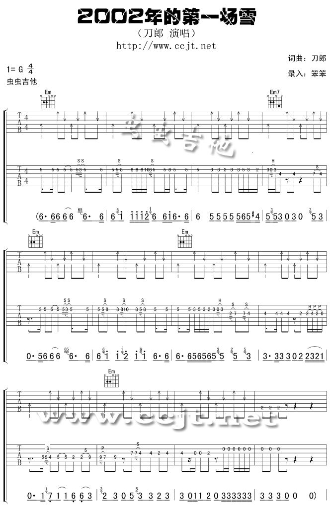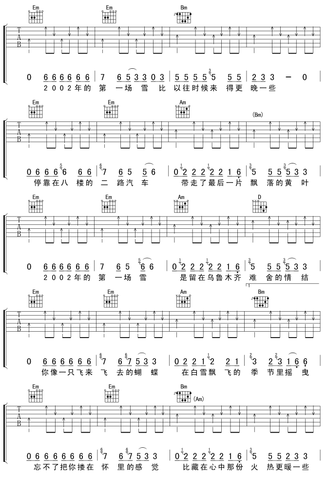 曲谱介绍: 《2002年的第一场雪》吉他弹唱谱,共有7张高清图谱。
