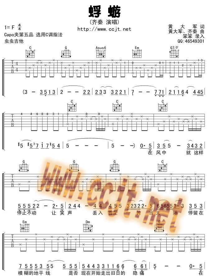当前位置:琴谱网>吉他弹唱>蜉蝣