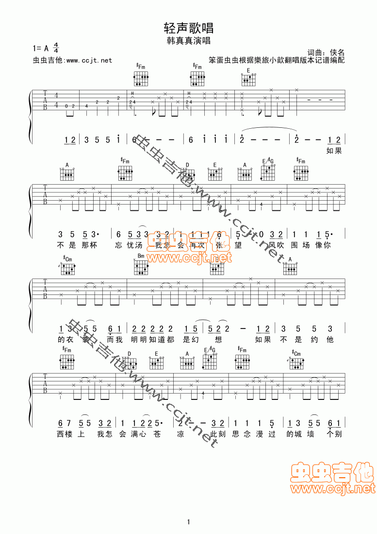 当前位置:琴谱网>吉他弹唱>轻声歌唱