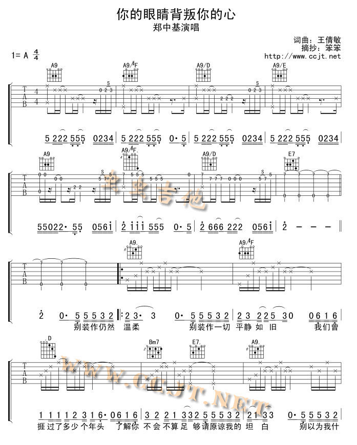 当前位置:琴谱网>吉他弹唱>你的眼睛背叛你的心
