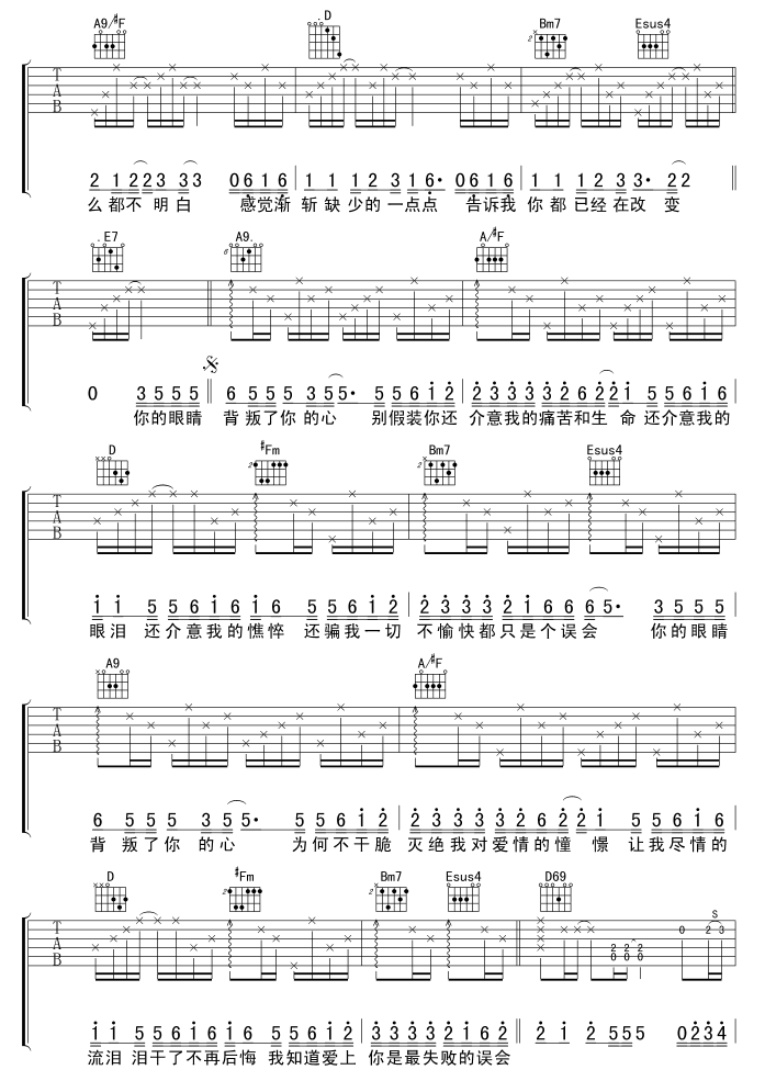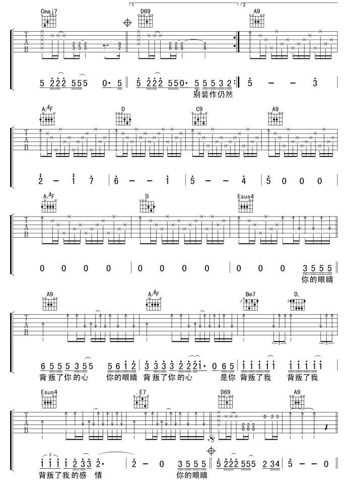 你的眼睛背叛你的心吉他谱 - 吉他弹唱谱