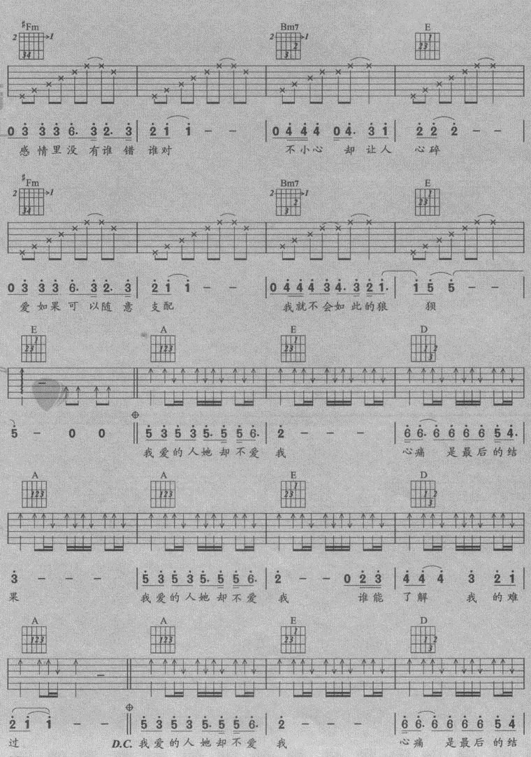 我爱的她不爱我吉他谱 - 吉他弹唱谱