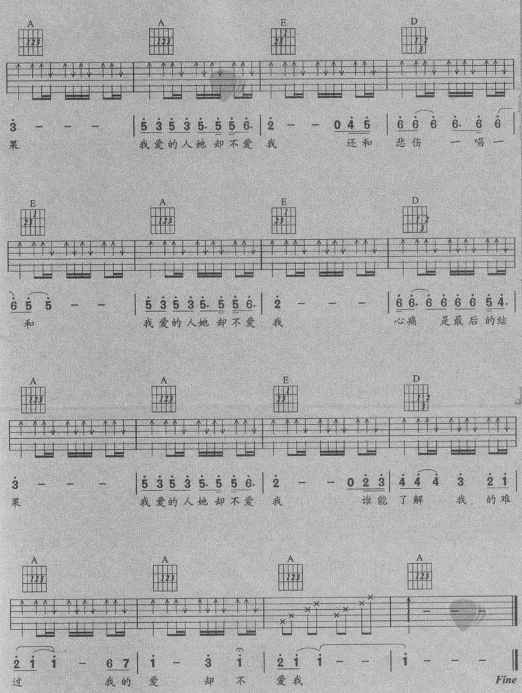 曲谱介绍: 《我爱的她不爱我》吉他弹唱谱,共有3张高清图谱。
