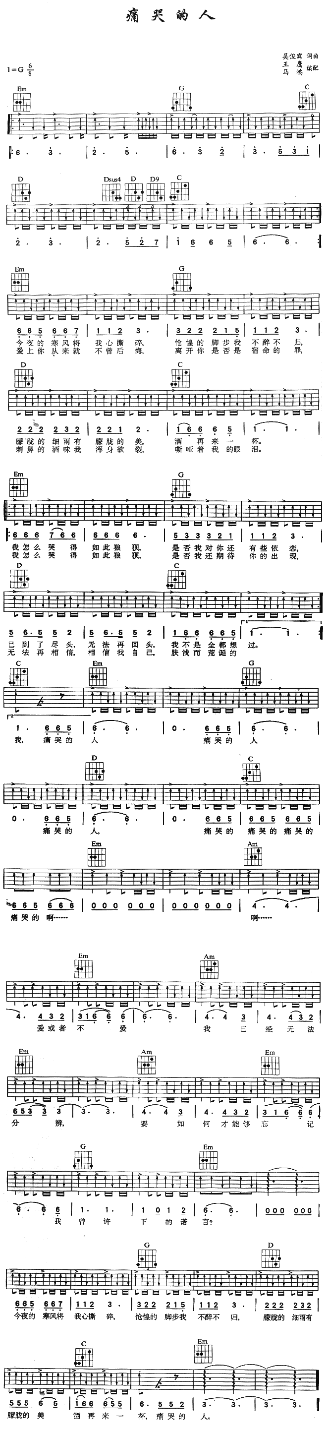 当前位置:琴谱网>吉他弹唱>痛哭的人