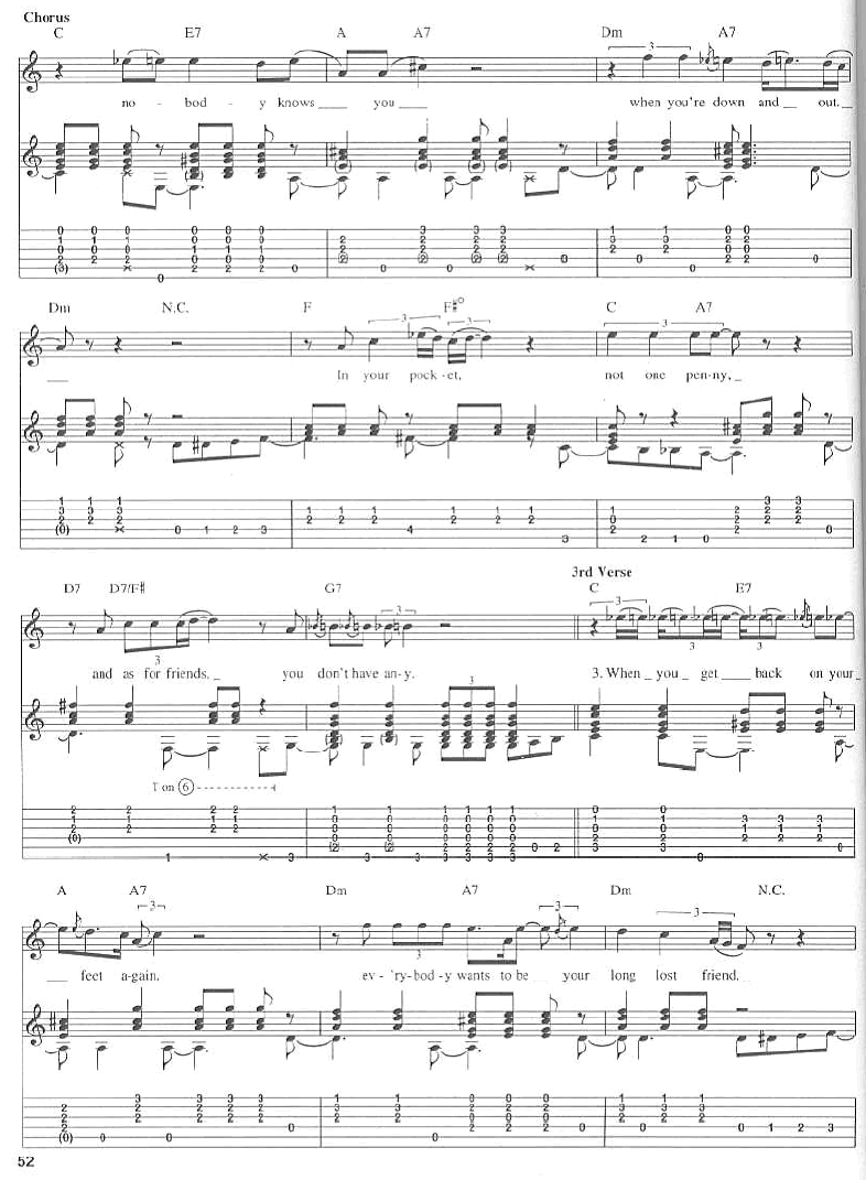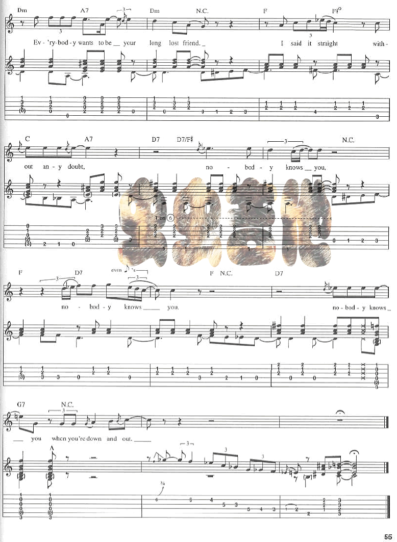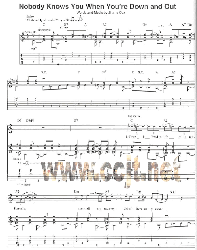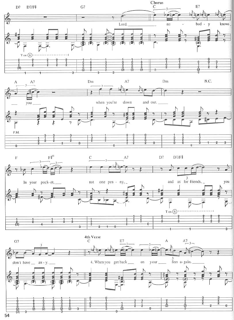 当前位置:琴谱网>吉他弹唱>Nobody Knows You When YOu're Down and Out