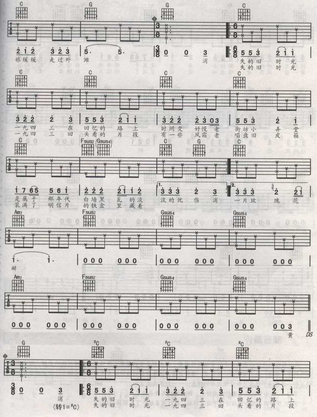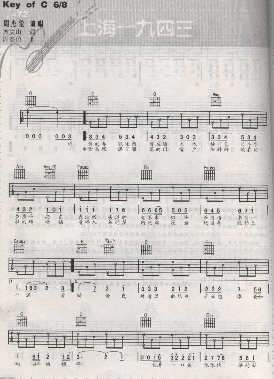 曲谱介绍: 《上海1943》吉他弹唱谱,共有3张高清图谱。