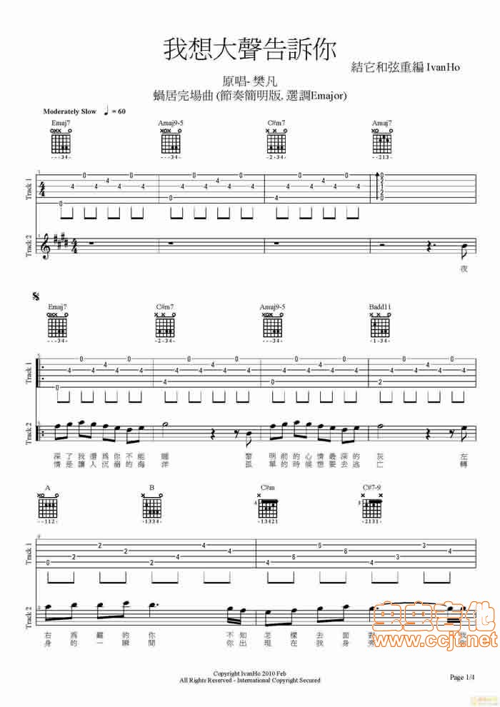 我想大声告诉你吉他谱 - 吉他弹唱谱