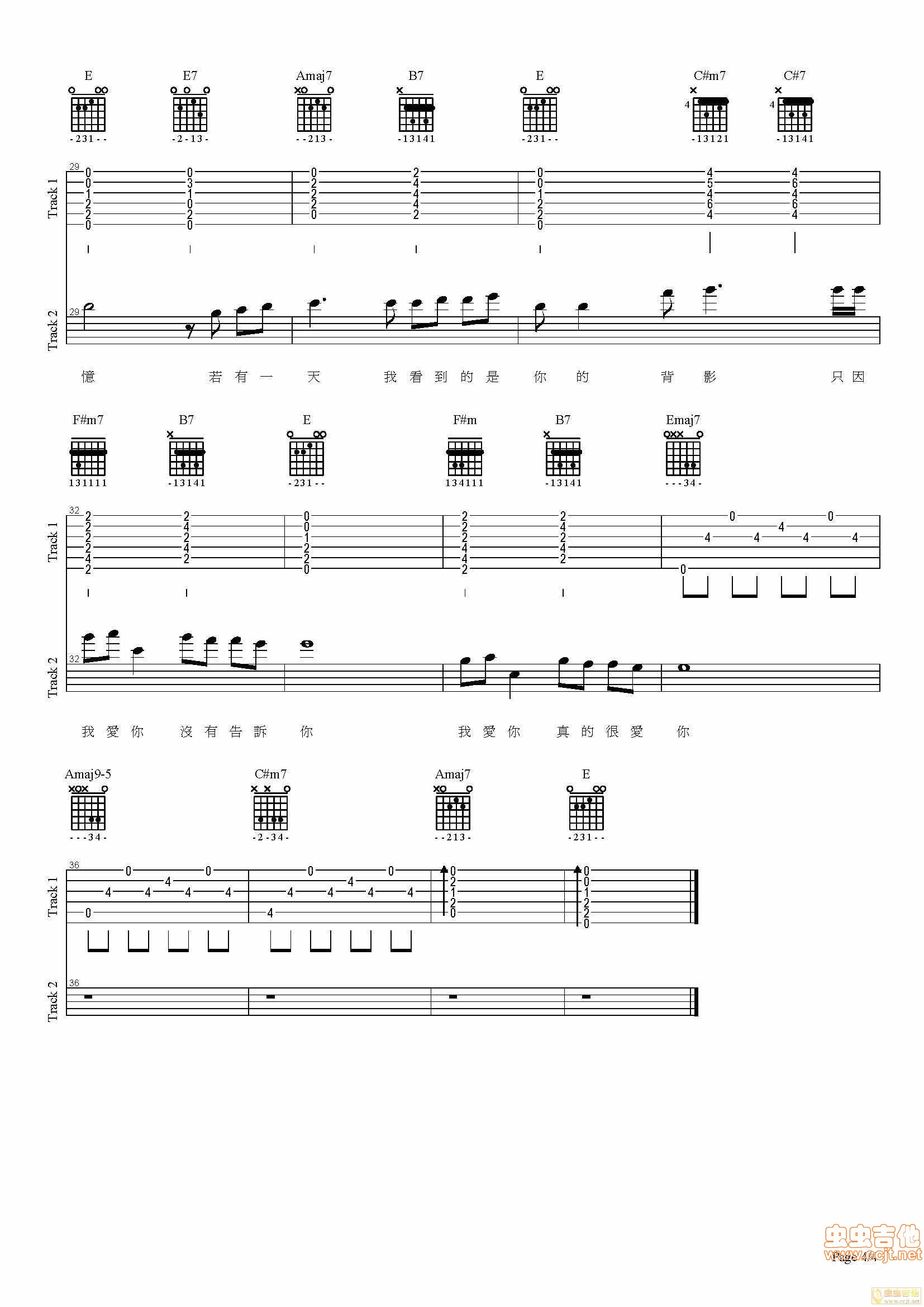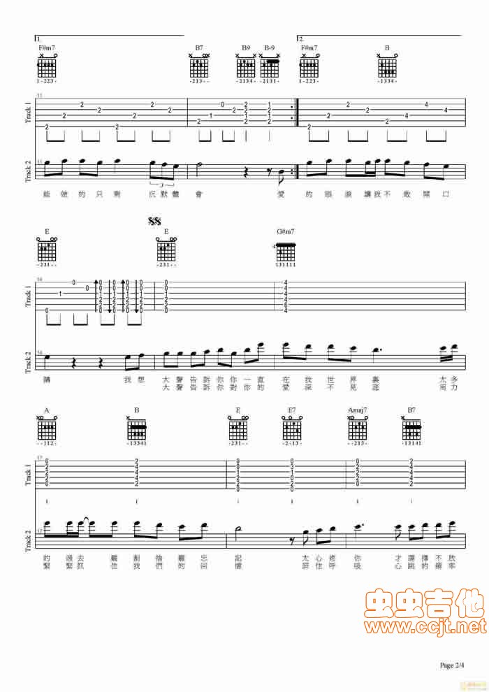 曲谱介绍: 《我想大声告诉你》吉他弹唱谱,共有4张高清图谱。