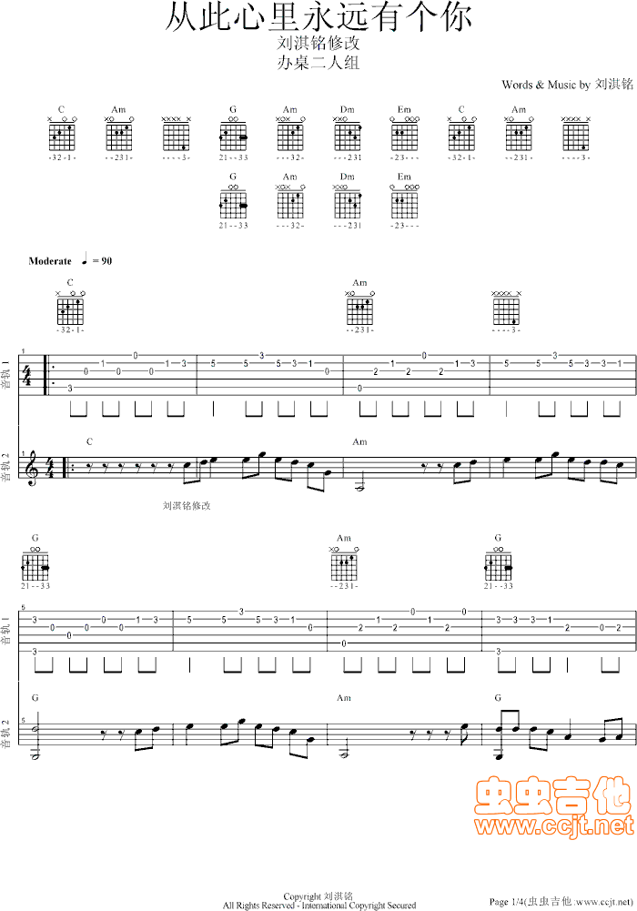 从此心里永远有个你吉他谱 - 吉他弹唱谱