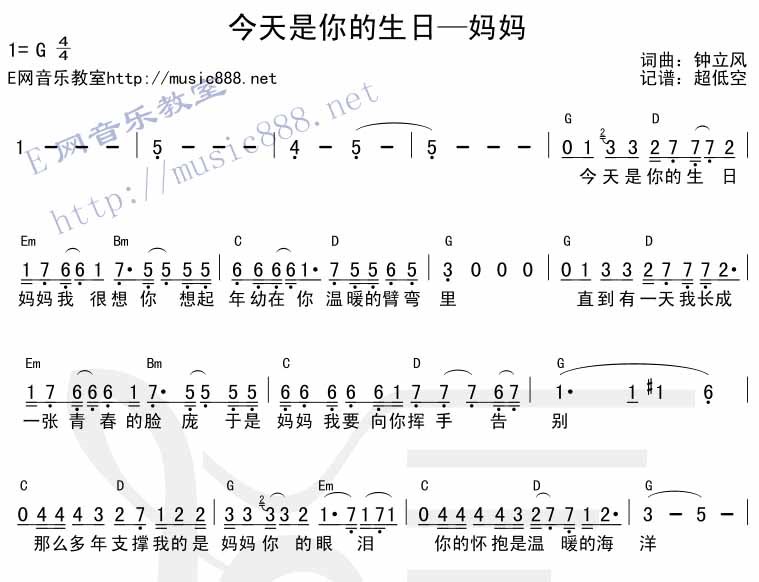 当前位置:琴谱网>吉他弹唱>今天是你的生日,妈妈