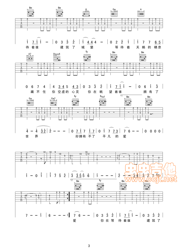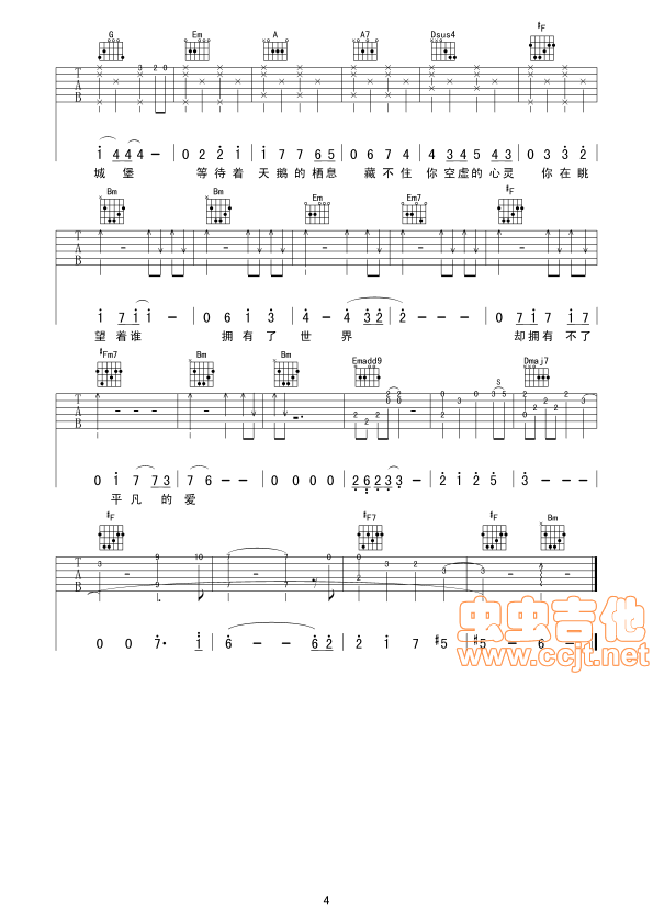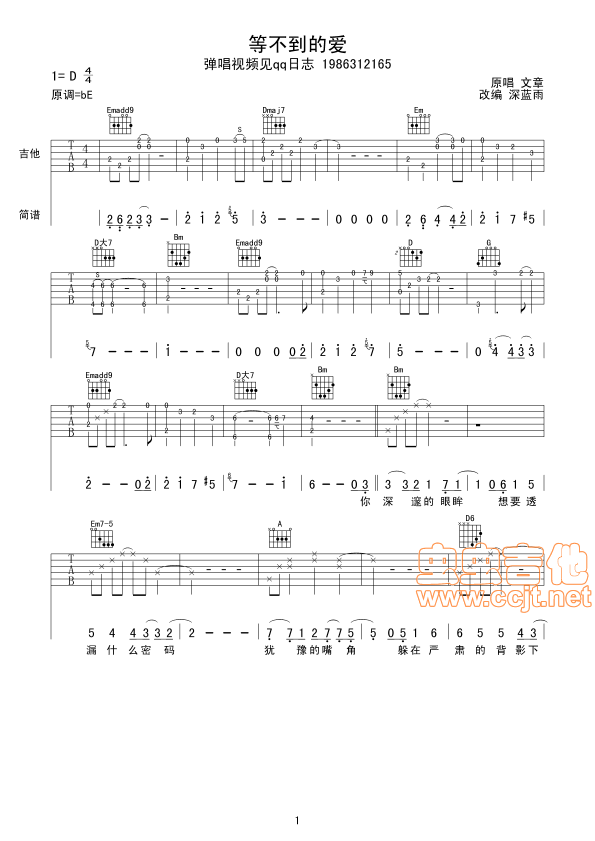 曲谱介绍: 《等不到的爱》吉他弹唱谱,共有4张高清图谱。