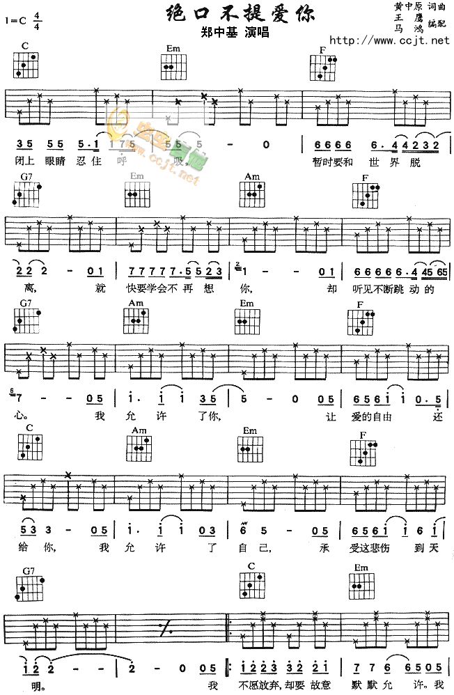 当前位置:琴谱网>吉他弹唱>绝口不提爱你