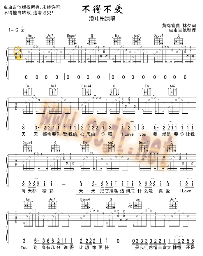 不得不爱吉他谱 - 吉他弹唱谱