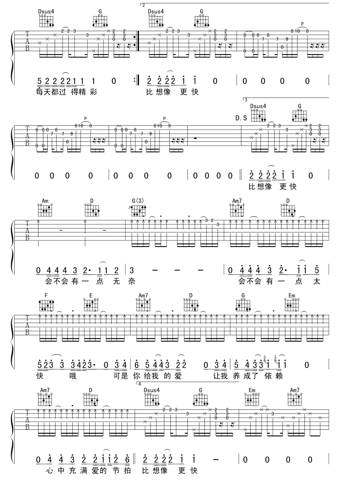 曲谱介绍: 《不得不爱》吉他弹唱谱,共有4张高清图谱。
