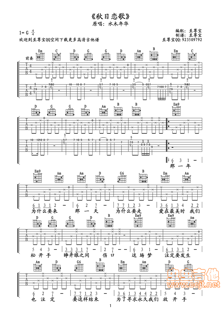 秋日恋歌吉他谱 - 吉他弹唱谱