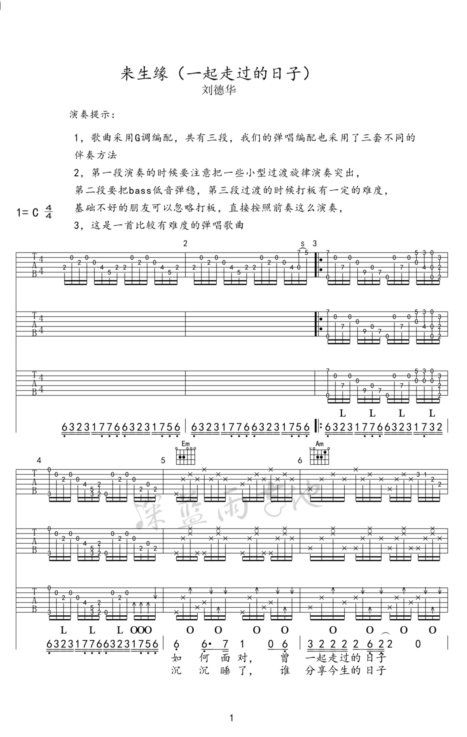 一起走过的日子吉他谱 - 刘德华 - C调吉他弹唱谱