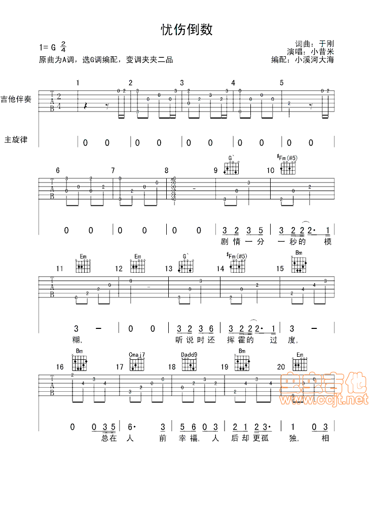 忧伤倒数吉他谱 - 吉他弹唱谱