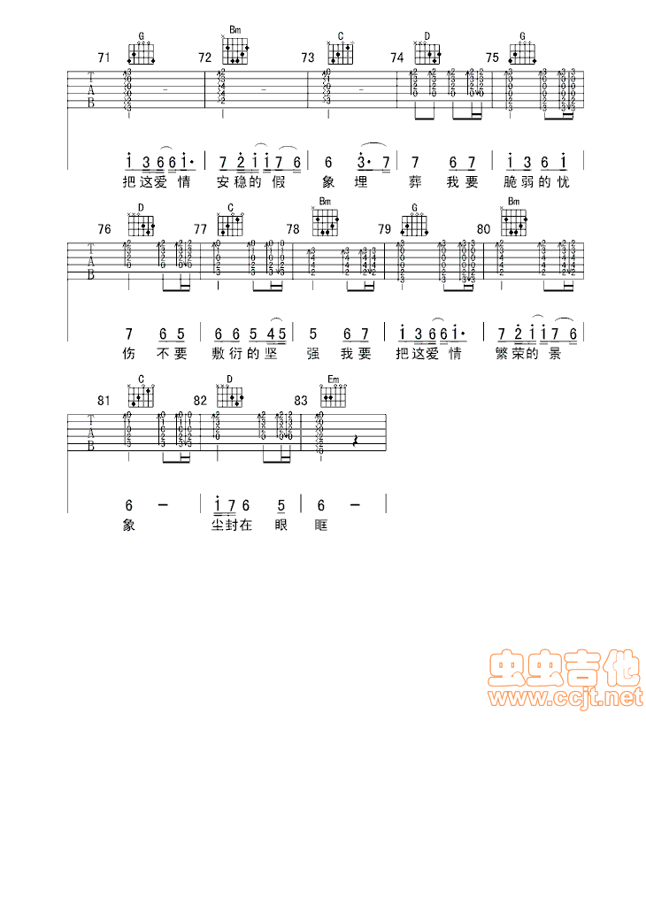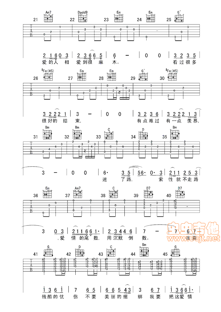 曲谱介绍: 《忧伤倒数》吉他弹唱谱,共有4张高清图谱。