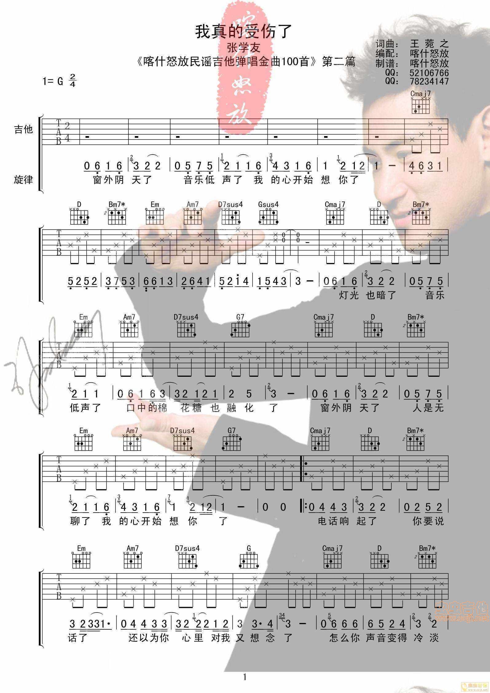 我真的受伤了 喀什怒放吉他谱 - 我真的受伤了 - 吉他弹唱谱