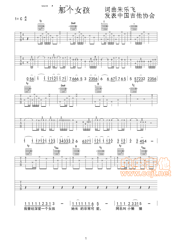 曲谱介绍: 《那个女孩》吉他弹唱谱,共有4张高清图谱。