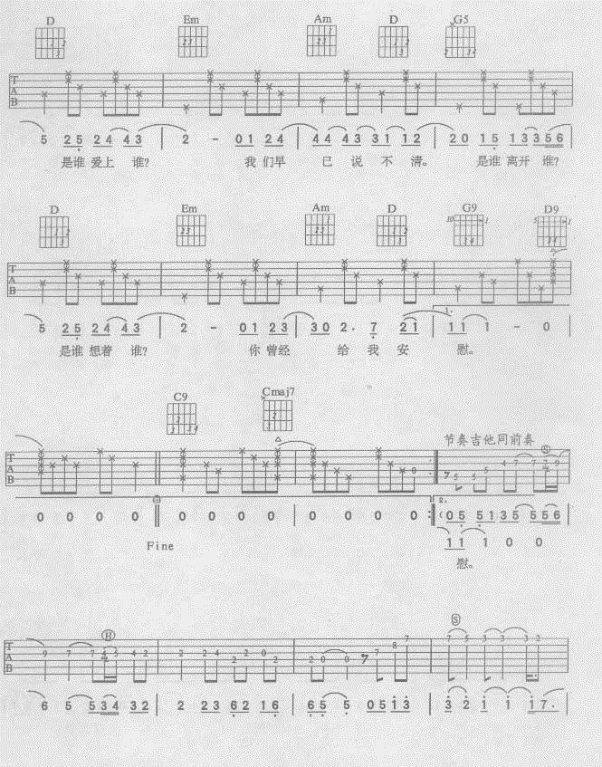 昨天今天吉他谱 - 吉他弹唱谱