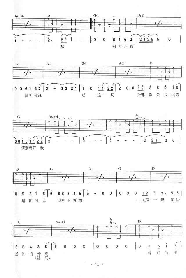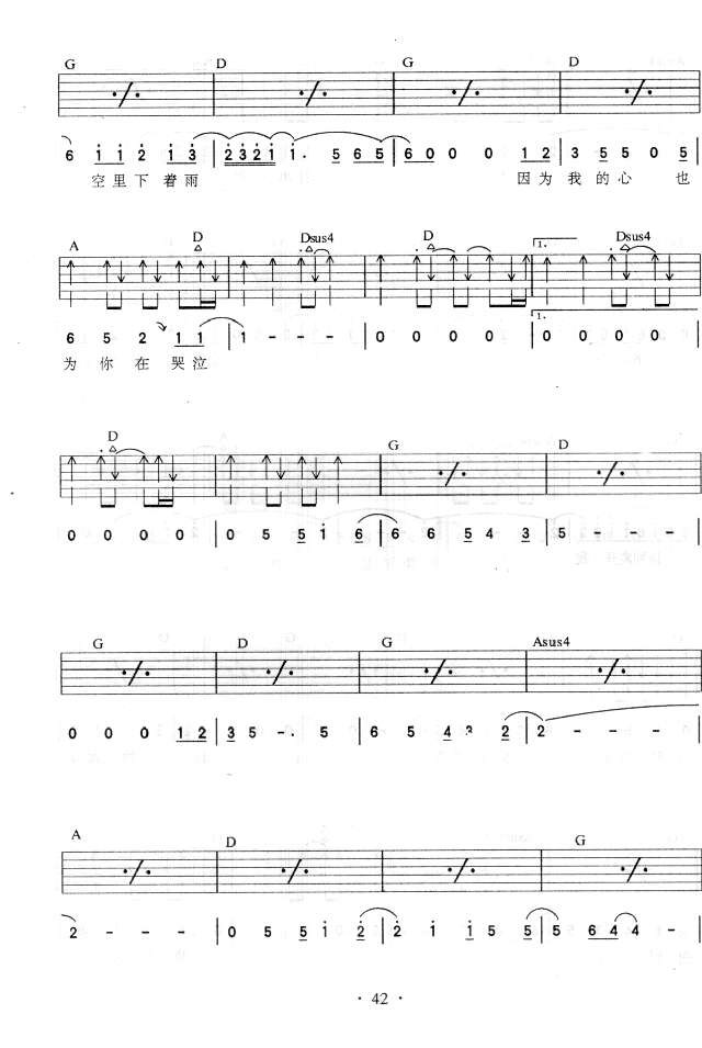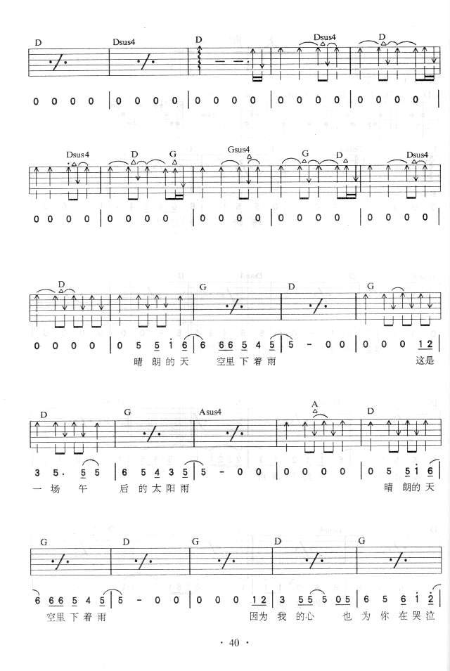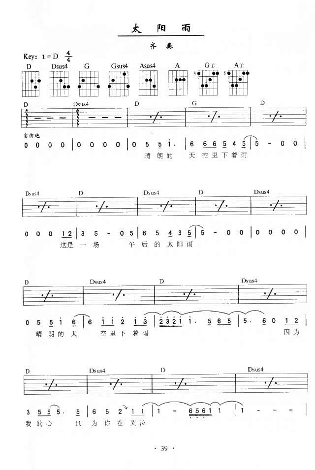 曲谱介绍: 《太阳雨》吉他弹唱谱,共有5张高清图谱。