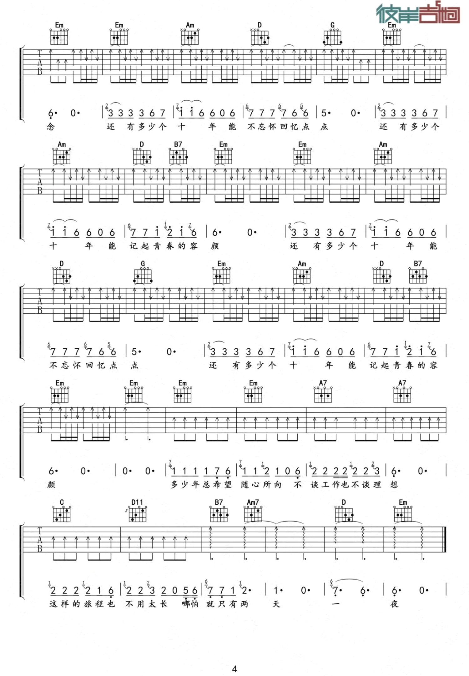 吉他弹唱C调来源:彼岸吉他601 浏览2020-02-08 04:01发布图谱共4页