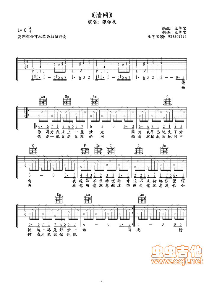 曲谱介绍: 《情网》吉他弹唱谱,共有2张高清图谱,免翻页排版设计。