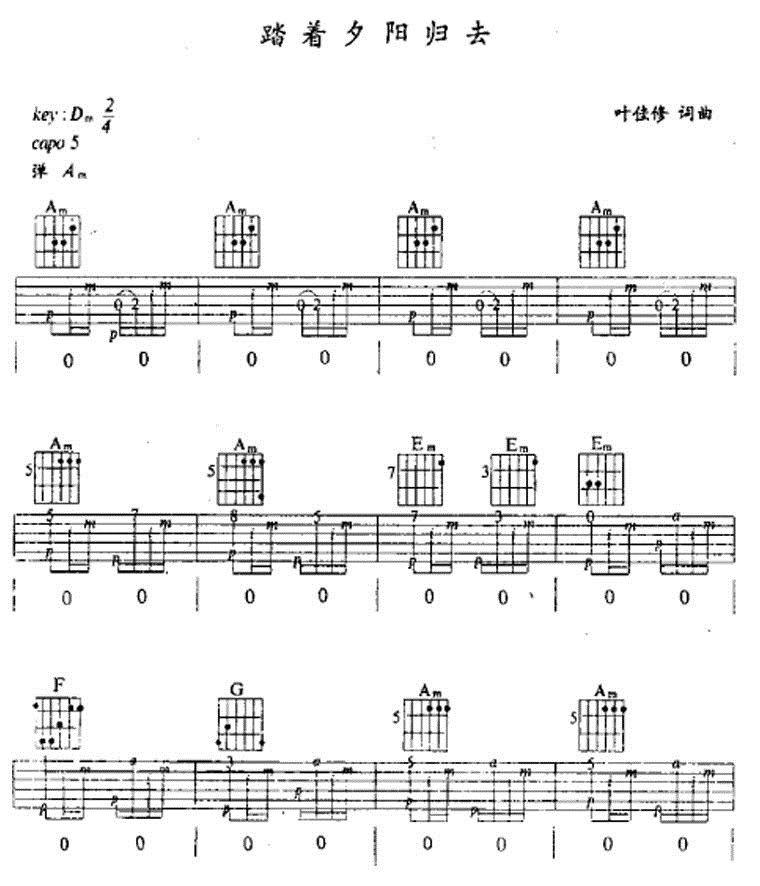 踏着夕阳归去吉他谱 - 吉他弹唱谱