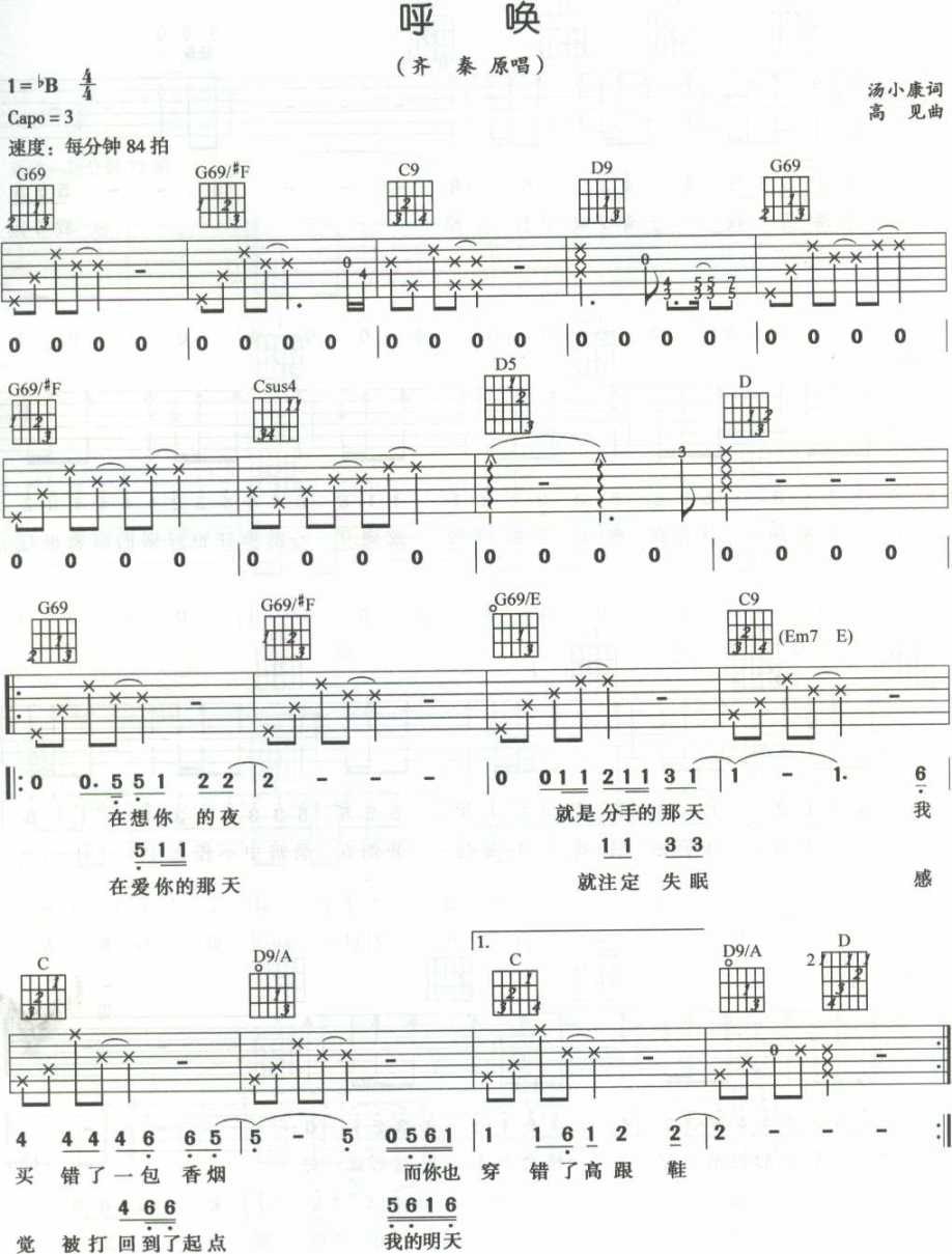 呼唤_扫描吉他谱 - 呼唤 - 吉他弹唱谱
