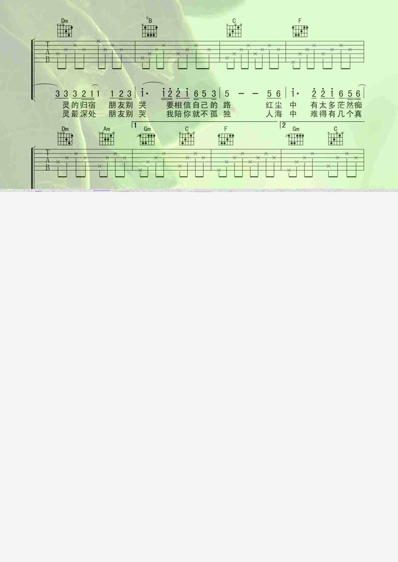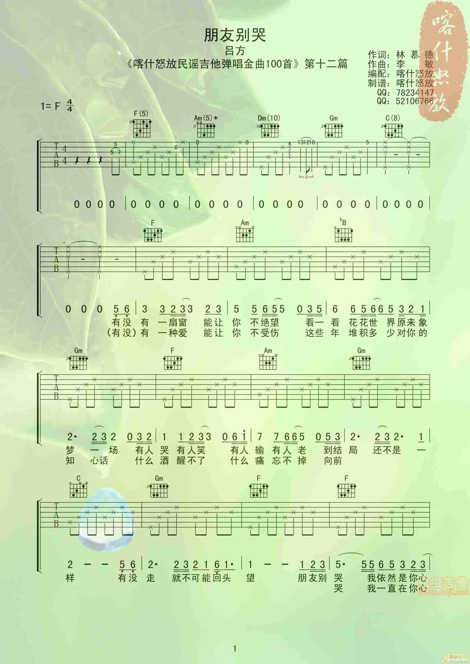 曲谱介绍: 朋友别哭《朋友别哭喀什怒放》吉他弹唱谱,共有2张高清图谱,免翻页排版设计。