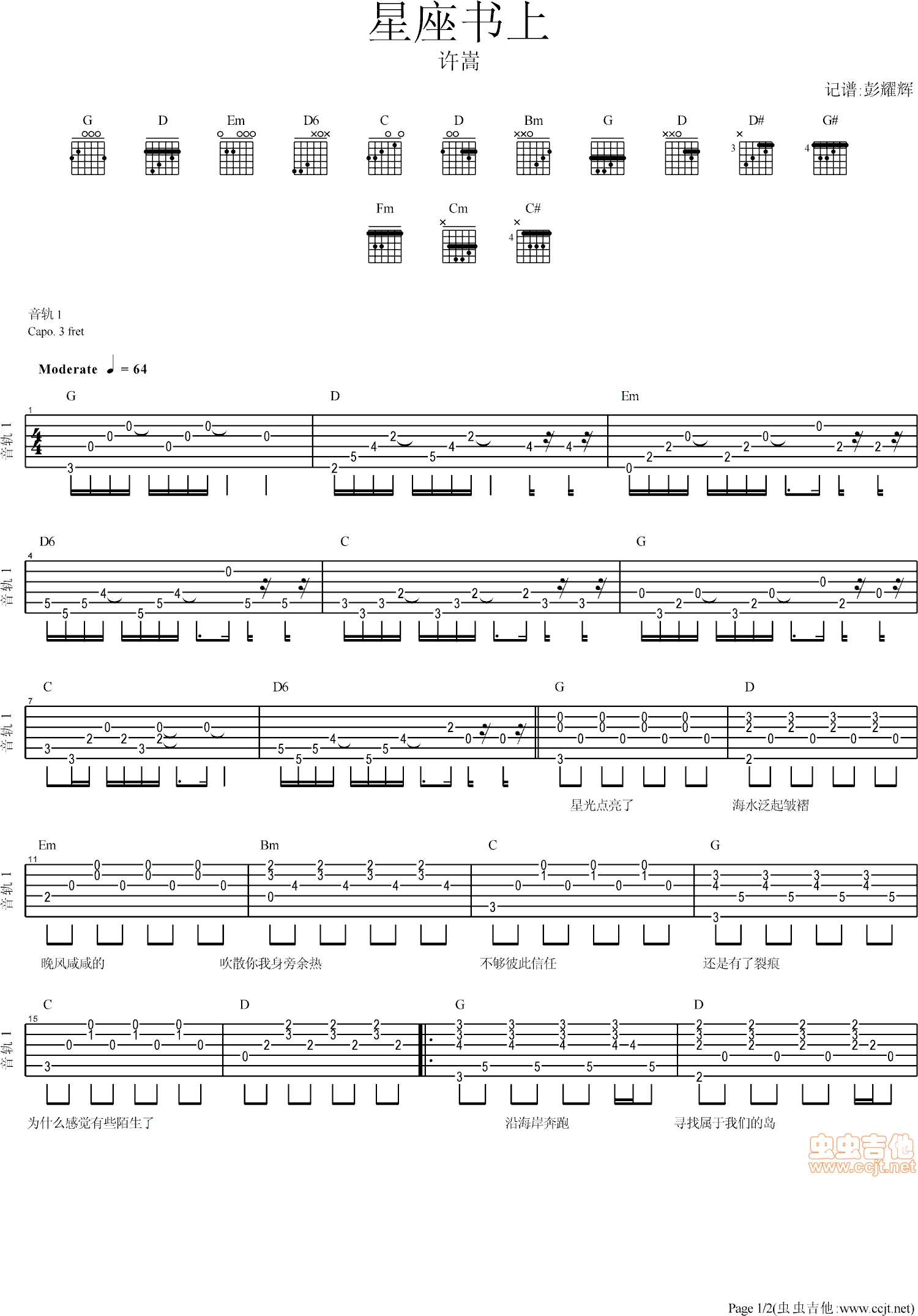 星座书上吉他谱 - 吉他弹唱谱