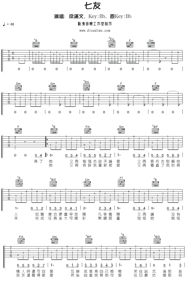 七友吉他谱 - 吉他弹唱谱