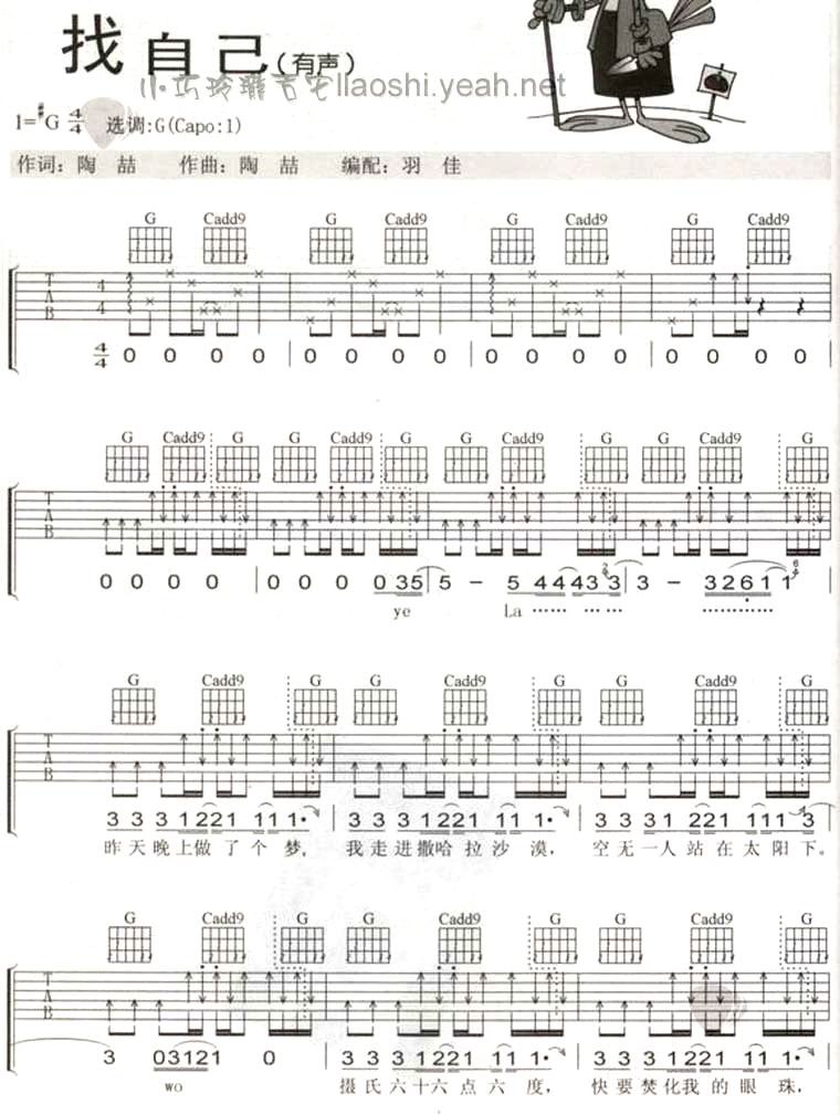 曲谱介绍: 《找自己》吉他弹唱谱,共有4张高清图谱。