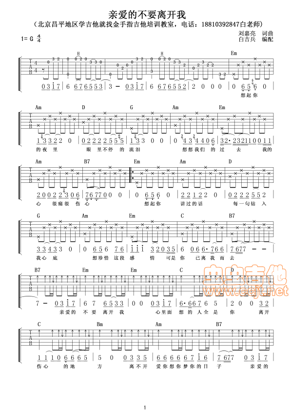 亲爱的不要离开我吉他谱 - 吉他弹唱谱