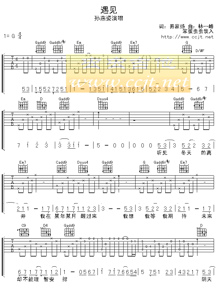 遇见吉他谱 - 吉他弹唱谱