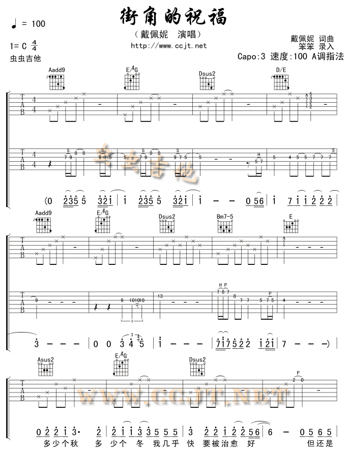 街角的祝福吉他谱 - 吉他弹唱谱