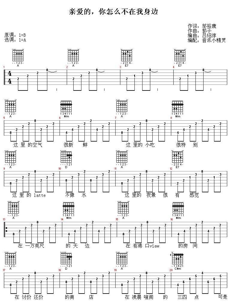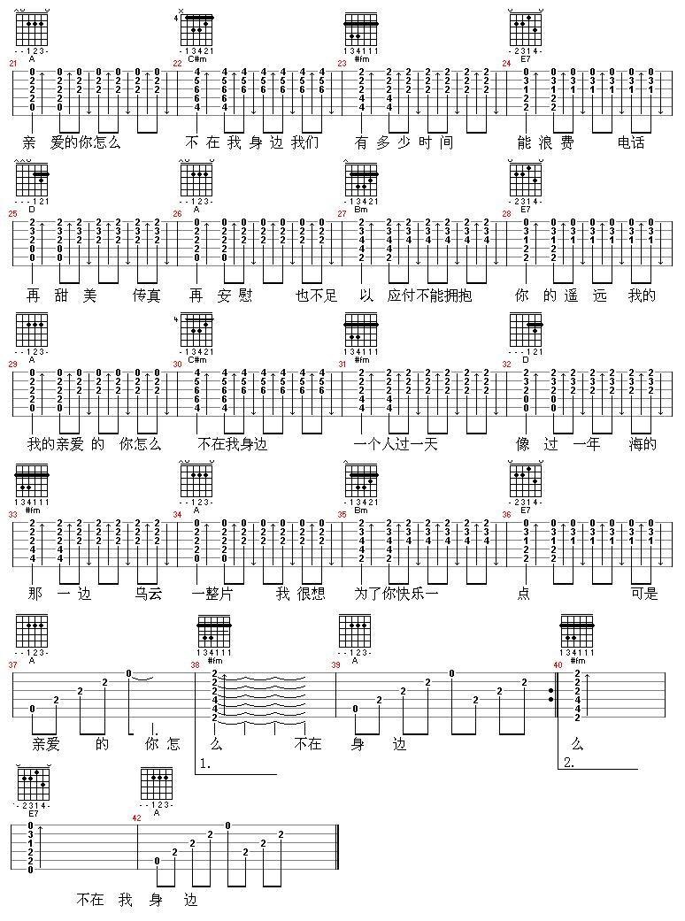 亲爱的,你怎么不在我边吉他谱 - 吉他弹唱谱