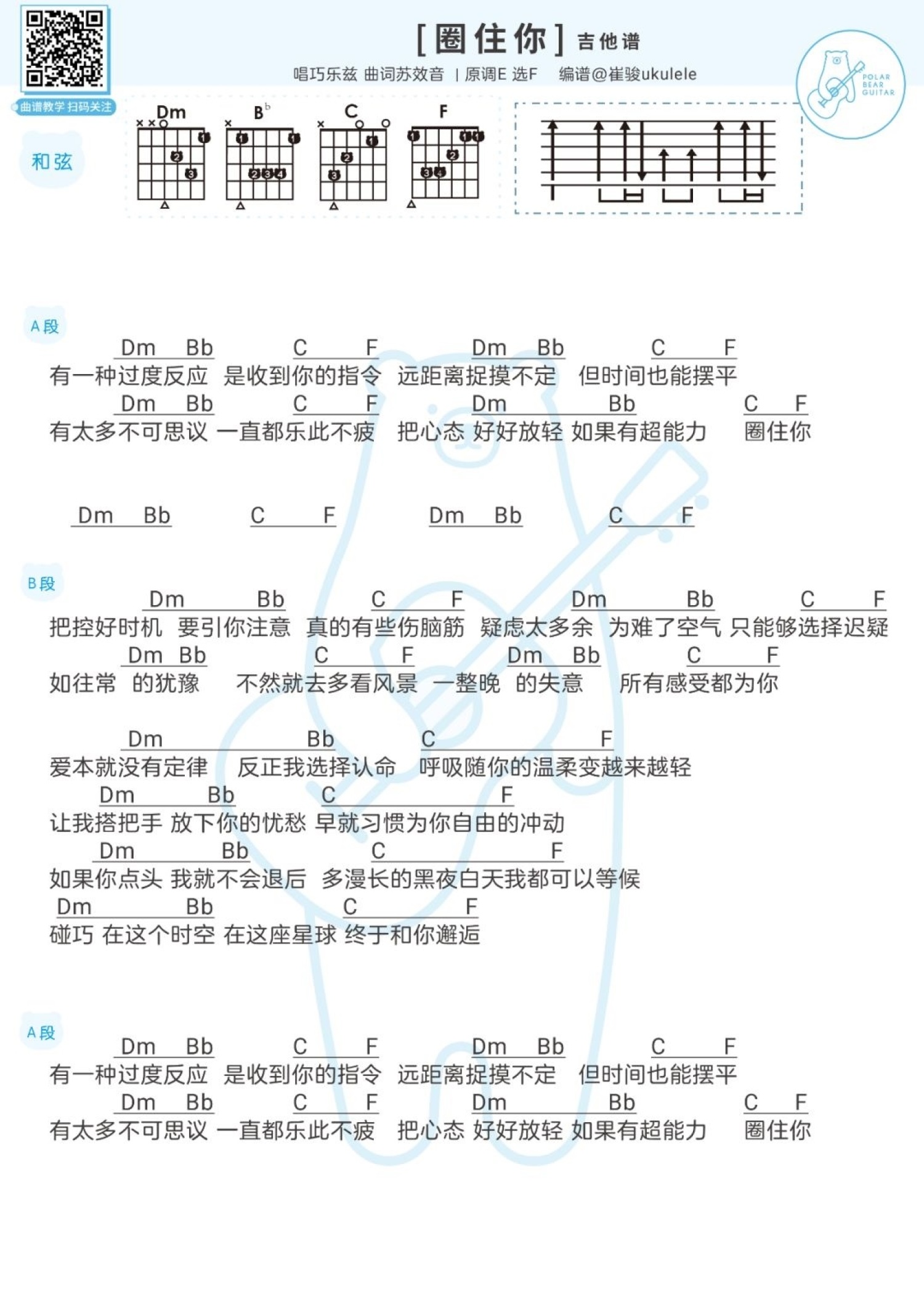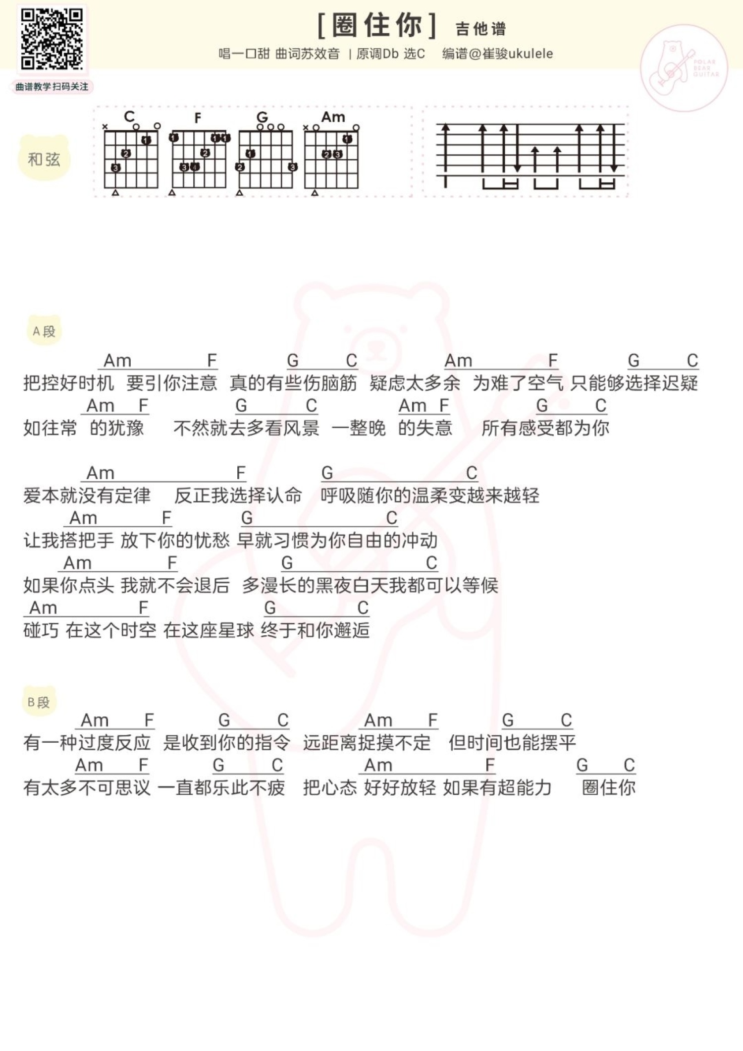 曲谱介绍: 一口甜《圈住你》吉他谱_C调吉他弹唱谱_和弦谱