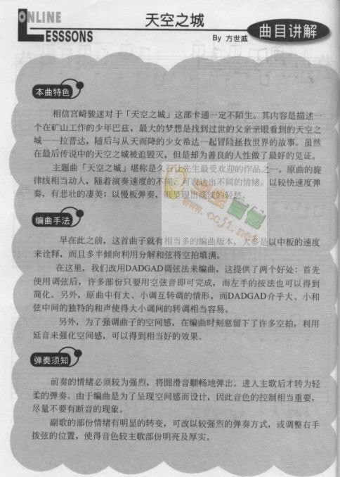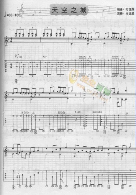曲谱介绍: 《天空之城》吉他弹唱谱,共有5张高清图谱。