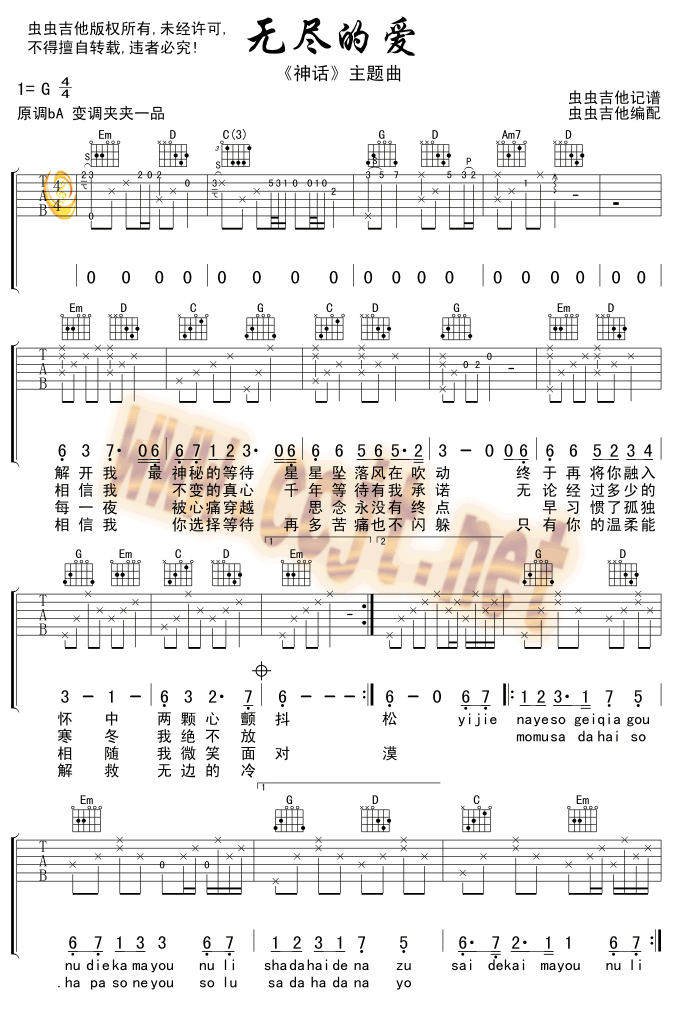 神话吉他谱 - 无尽的爱| - 吉他弹唱谱